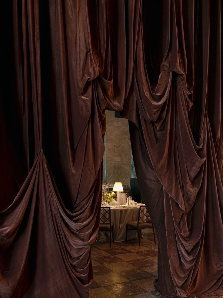We are seeing massive fabric installations, hanging “clouds” of florals, and intricate lighting grids that make a room feel like an art gallery.